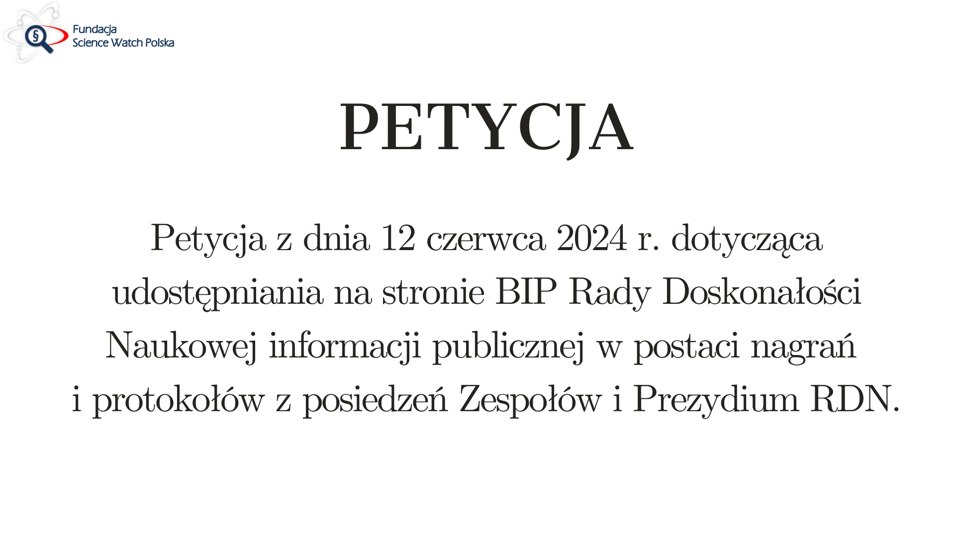 Dziś w imieniu Fundacji wysłano petycję do RDN w sprawie zamieszczania na stronie BIP RDN nagrań i protokołów z posiedzeń Zespołów i Prezydium RDN.