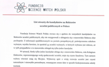 W maju 2020 r. do Fundacji Science Watch Polska zgłosiła się habilitantka w sprawie nieprawidłowości dotyczących jej postępowania habilitacyjnego prowadzonego na Wydziale Prawa i Administracji Uniwersytetu Śląskiego. Uchwała Komisji habilitacyjnej w jej postępowaniu była praktycznie jednomyślna (6 głosów na „tak”, 1 głos na „nie”).