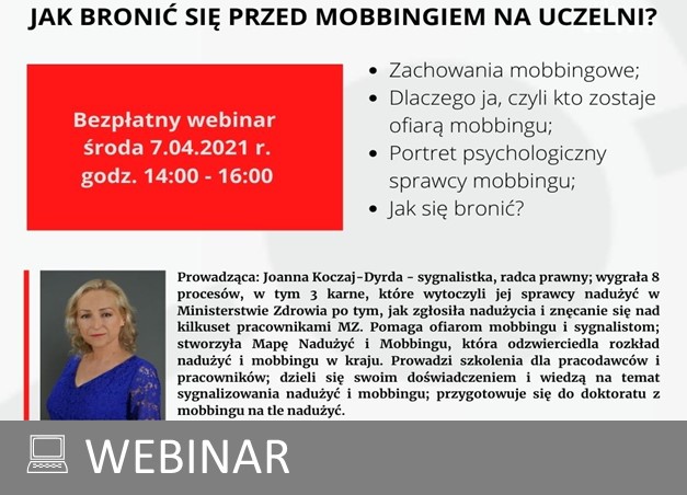Czytaj więcej: Webinar pt. Jak bronić się przed mobbingiem na uczelni?