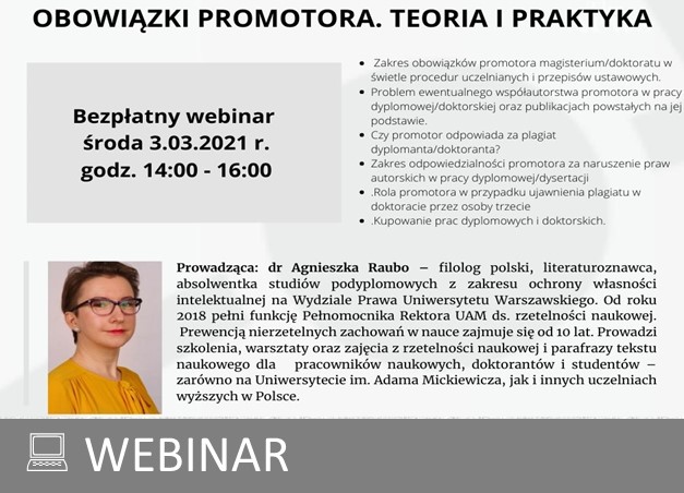 Czytaj więcej: Webinar, pt. Obowiązki promotora. Teoria i praktyka