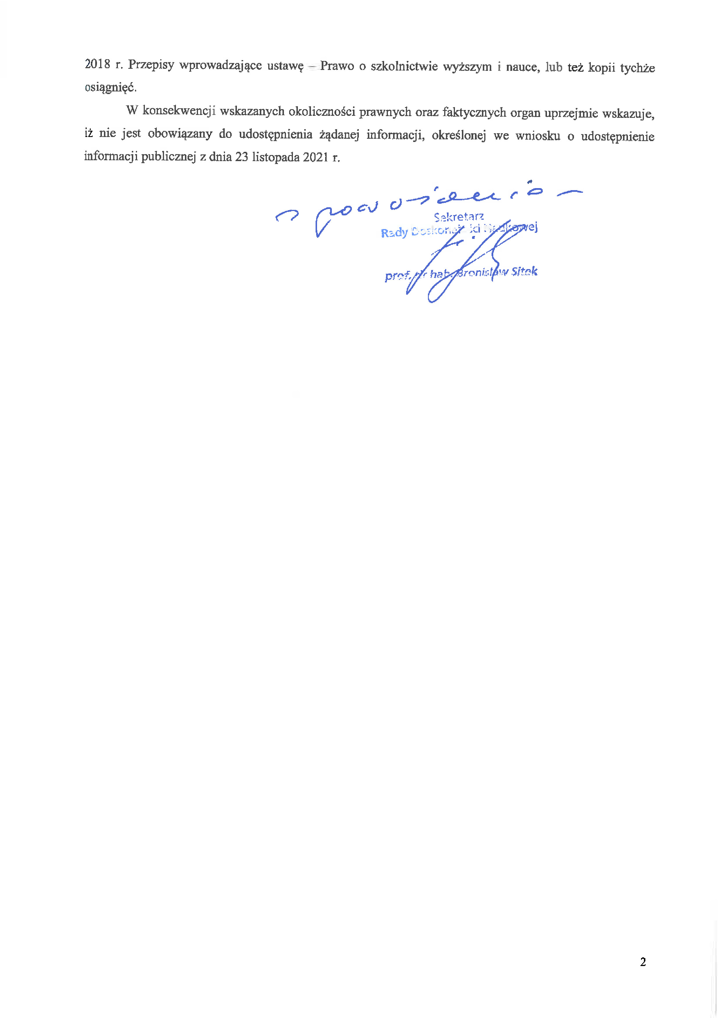 Dwa dni później, 25 listopada 2021 r. przyszła odpowiedź z RDN z informacją, „iż nie jest w posiadaniu osiągnięć naukowych (…)”