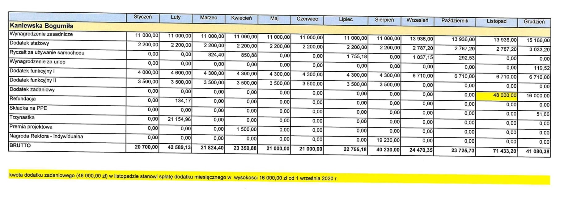 W tabeli 2. przedstawiono wynagrodzenie prof. B. Kaniewskiej, która od września 2020 r. pełni funkcję rektora (wcześniej była prorektorem).