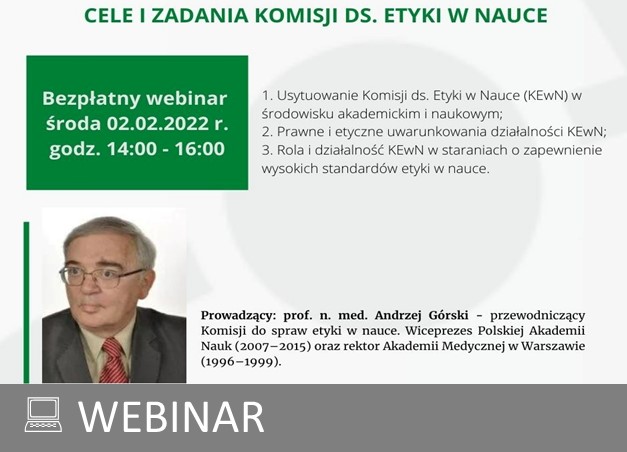 Czytaj więcej: Webinar pt. Cele i zadania Komisji ds. Etyki w Nauce
