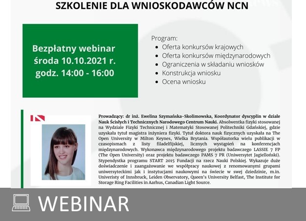 Czytaj więcej: Webinar pt. Szkolenie dla wnioskodawców NCN