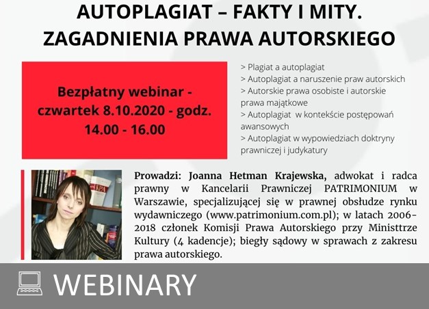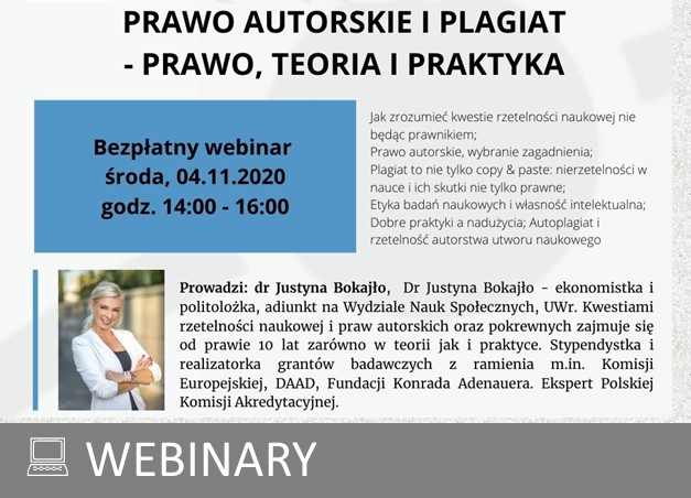 Webinar, pt. Prawo autorskie i plagiat - prawo, teoria i praktyka
