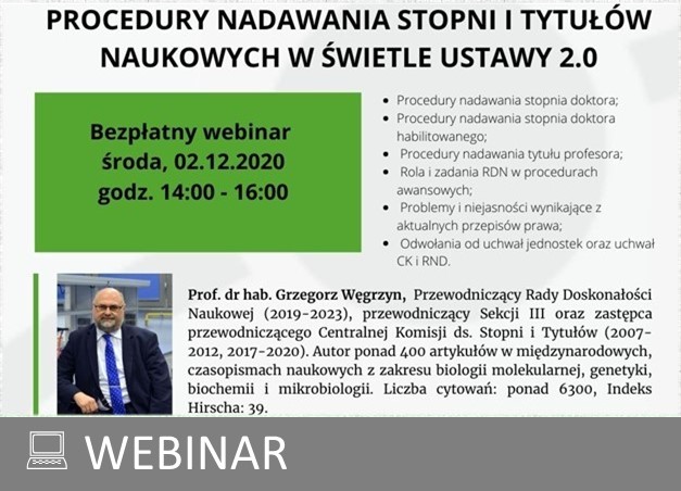Webinar, pt. Procedury nadawania stopni i tytułów...